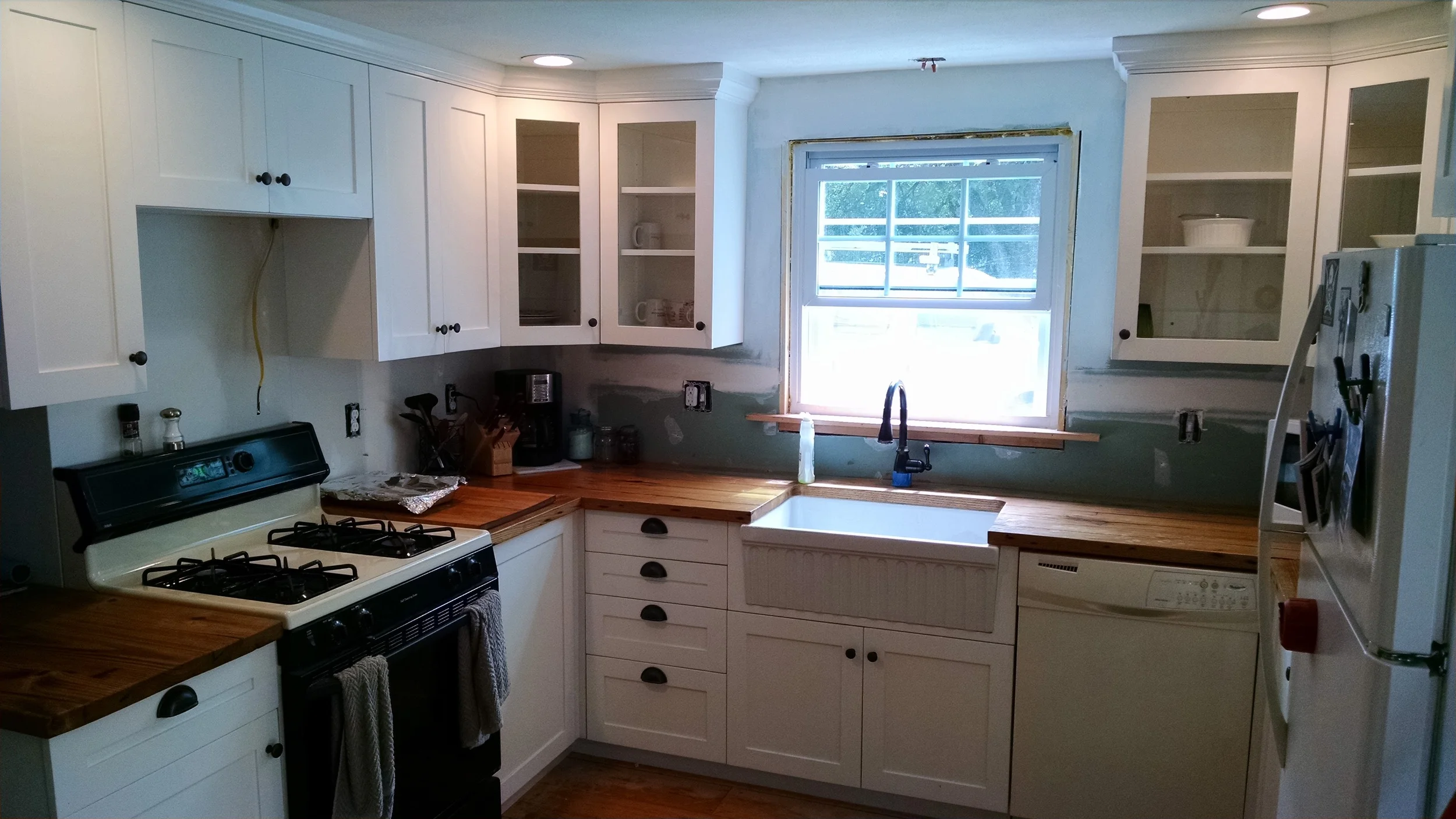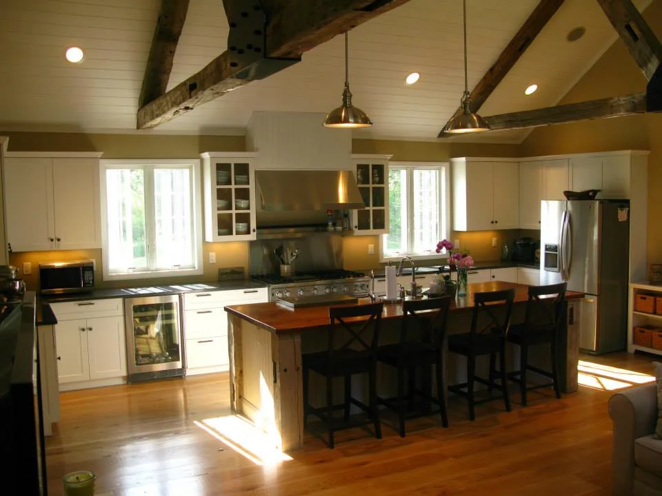 Country kitchen with reclaimed chestnut countertops, Bethlehem, CT